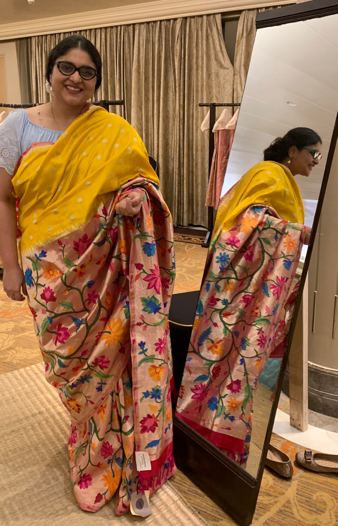 An exhibition inspired by Saroini Naidu’s protagonist Queen Gulnaar, from The Queen’s Rival, Shaahana showcased a splendid collection of sarees (Paithanis, Benarasi, Jamdanis in khadi, Patan Patolas in Twill) by textile revivalist Sailesh Singhania and an eclectic spread of silver jewellery by Apala by Sumit. The exhibition was curated by Born of Web and held at the Claridges Hotel, Aurangzeb Road on August 22nd, 2019.